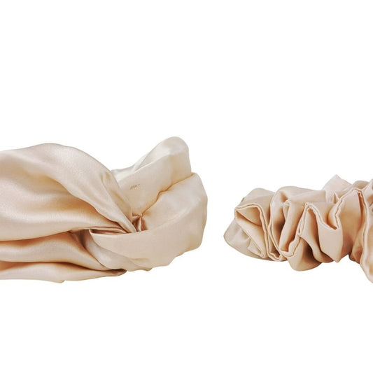 Ivory Silk Knot Headband and Large Scrunchie Set