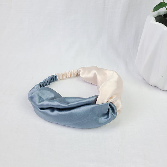 Silk Headband - Knot Style - Ivory and Blue - R Belliard